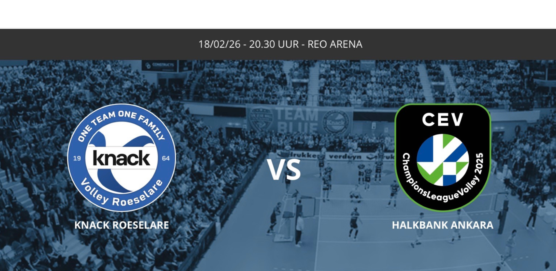 Knack Volley vs Halkbank Ankara op woensdag 18 februari om 20.30u in de REO Arena op Schiervelde.